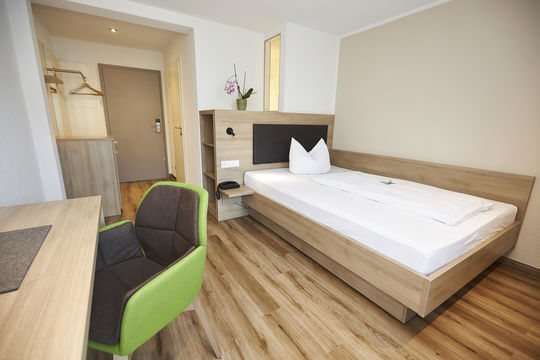 Unsere Standard Kategorie ist einfach gehalten und nicht modernisiert. Sie sind ausgestattet mit einem kleinen Schreibtisch und verfügen teilweise über einen Balkon. Die kleinen Standard Doppelzimmer bestehen aus einem klassischen Doppelbett mit zwei 90x200cm Matratzen und Dusche. Die kleinen Standard Einzelzimmer haben 90x200cm Betten und neu sanierte Bäder mit Regenschauerdusche. Das Standard Dreibettzimmer bietet Ihnen ein klassisches Doppelbett und ein Einzelbett. Das Sofa im Zimmer kann zusätzlich als Schlafsofa umfunktioniert werden und bietet bequem Platz für bis zu vier Personen.